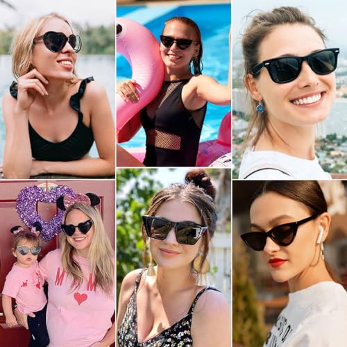 • Black Sunglasses Bulk in Different Shapes : The set includes 12 black sunglasses in different shapes for women. Each pair of black sunglasses for women is the current fashion piece, ideal for parties, dressing up and a variety of occasions that will make you absolutely charming.