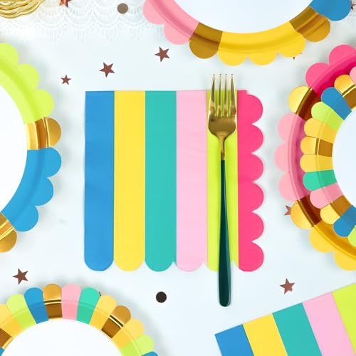 ECOHOLA Birthday Party Supplies Disposable 9" Dinner Plates 7" Dessert Plates 6.5" Luncheon Napkins for Birthday Garden Party Afternoon Teas Baby Shower Wedding, Scalloped Edge, Serve 24