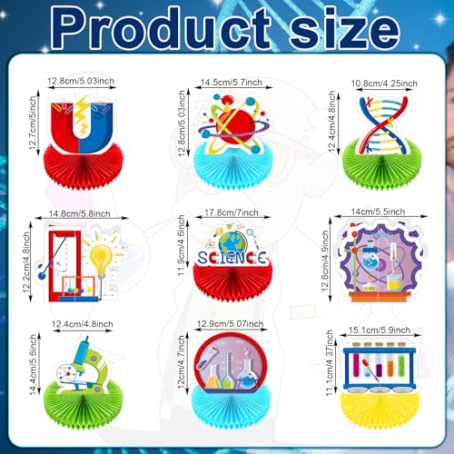- Science Birthday Party Decorations: you will receive a package including 9 pieces of science honeycomb table ornaments in 9 different styles, a nice combination and abundant quantity to satisfy your daily use and replacement