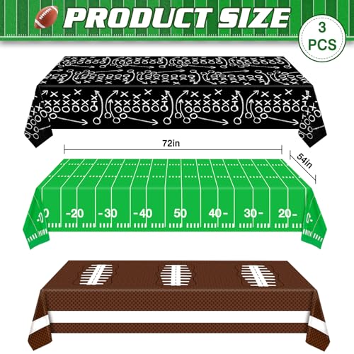 - Triple the Fun for Football Fans – Gear up for football day with our exciting pack of three tablecloths! Featuring a spirited football pattern, a lively football field design, and a striking table cover of football tactical guidance. This football decorations set is excellent for every football fan ready to celebrate in style.