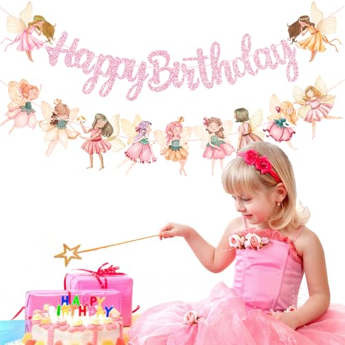 - 🍬【Dreamlike pink fairies birthday party decorations】Happy birthday in girly-pink is paired with fairies cutout banner in various shapes. The unique design makes your party feel like a fairy tale world. The pink happy birthday banner is sparkling and will instantly brighten up your fairy party.