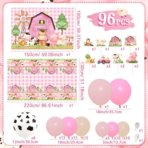 Farm Animal Themed Party Decoration for Girl,Farm Barn Animals Backdrop Banner Farmhouse Animals Decor Party Tablecloth Balloon Arch Garland Kit for Birthday Photography Baby Shower Party Supplies