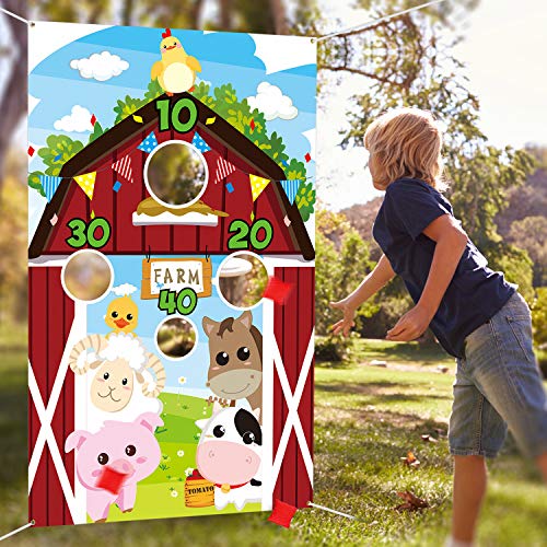 Farm Animals Toss Game with 3 Nylon Bean Bags, Indoor and Outdoor Farm Animals Party Game for Kids and Adults, Farmer Theme Birthday Party Decorations and Supplies