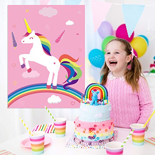 - Pin the horn on the unicorn game set, a good choice to unicorn birthday party, kid games, classroom party, unicorn party, add more fun to your friends, kids and families