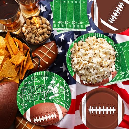 - Football Themed Design: The football plates feature a design with a football, green turf, midfield line, the word "TOUCHDOWN!", and patterns that include yardage markings and football graphics. This combination creates an authentic game-day atmosphere, adding excitement to your party decorations. It’s a great choice for enhancing your football-themed event.