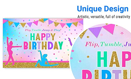 Funnytree Rainbow Gymnastics Birthday Theme Party Backdrop for Girl Gymnasts Tumbling Flip Jump Tumble and Play Decor Supplies Cake Table Banner Photo Booth Props Photography Background