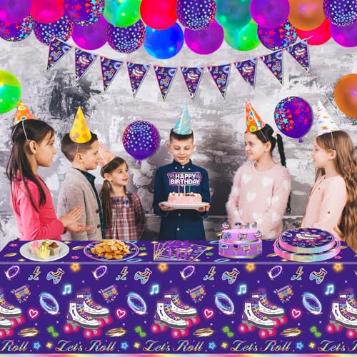 - Unique & Excellent Design: Our roller skating party tableware set featuring classic cute skates. The overall use of purple as the fundamental colour, plus skates lightning, love heart, stars and other funny elements. Impress your guests and make your skating themed party popular and unforgettable.