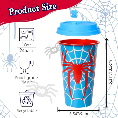 - 【Abundant Quantities&Components】you will get 24pcs reusable plastic Halloween Spider Web themed party cups in 2 vibrant design patterns-red blue with 24 lips and 24 plugs, sufficient quantities can meet your Halloween party’s needs.