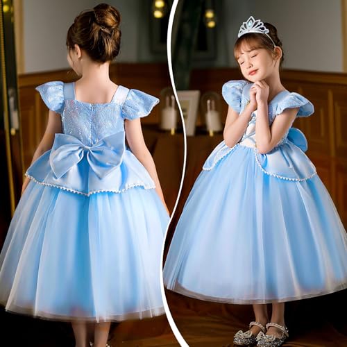 - 【Detailed Design & Easy to Wear】—Our princess dress features a fun and magical design with sparkling lights that will enchant any girl. The upper part of this dress is designed with sequins, sapphire brooch on the chest, petal waist design, fluffy skirt, soft and comfortable cotton lining, detachable cute bow on the back, zipper design for easy wearing and taking off, exquisite design makes your girl stand out in the crowd