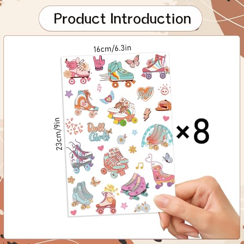 Gameza Roller Skate Temporary Tattoos, 200+ Roller Skating Party Favors Decorations, Boho Groovy Birthday Party Gifts Favors Retro 70s Girls Temporary Tattoos Stickers