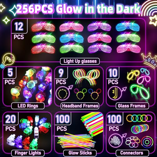 - Super Value Glow in the Dark Party Favors Set: Rich variety glow in the dark accessories for Halloween glow party includes 5 LED light up jelly rings, 12 LED glasses, 9 glow glasses molds, 10 glow handbands molds, 20 Finger Lights, 100 bulk glow sticks and 100 connectors. Ultra bright and flashing light neon glow party favors, neon party favors and glow party favors.