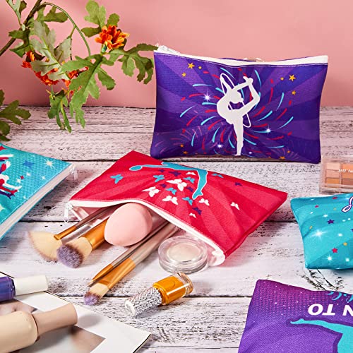 Hillban 18 Pcs Gymnastics Party Bags Gifts Gymnastics Team Makeup Toiletry Cosmetic Bags with Zipper for Women Teens Coach Gift Birthday Party Decorations