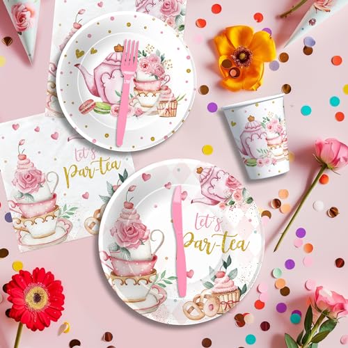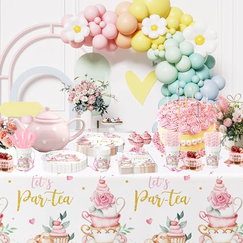 - HIPVVILD Tea Party Decorations Tableware Girls – Floral Garden Par-Tea Theme Birthday Supplies, Paper Plate, Cup, Napkin, Tablecloth, Cutlery | Serves 24