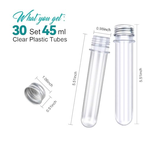 HNYYZL 30 Pack Science Party Test Tubes 45 ml 25x140mm,Clear Plastic Test Tubes Gumball Candy Tubes, Bath Salt Vials Christmas Birthday Gifts