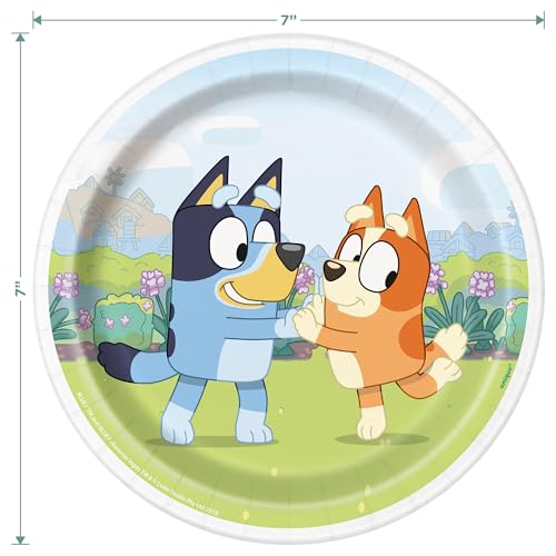 - This set includes paper dinner and cake plates with lunch and beverage size napkins, each adorned with your favorite Bluey characters.