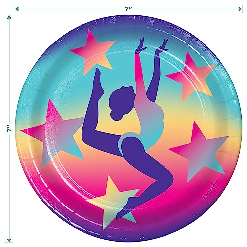 HOME & HOOPLA Gymnastics Party Supplies – Girl Gymnast Paper Dessert Plates & Beverage Napkins (16 Plates & Napkins)