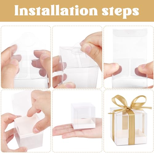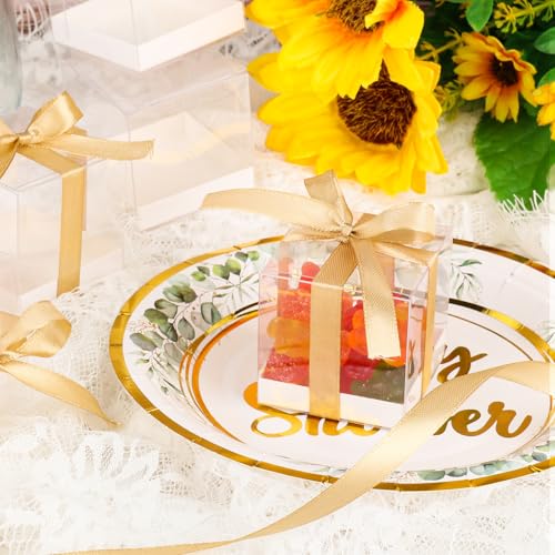 • Package Included:You will receive 50pcs clear gift boxes with gold ribbon, each box measures about 2x2x2 inches, the quantity is enough to meet your party needs.