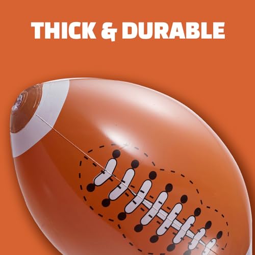 - PACK OF 12 – 16-INCH GIANT INFLATABLE FOOTBALLS: Each order includes a Pack of 12 Jumbo Size Inflatable Footballs. beach football arrive deflated and are easily blown up by mouth or by using any hand pump to save time. They are fun toys that can be used indoors or outdoors for football balloons pool party favors, beach balls, football party decorations, pool party decorations, and more. Footballs measure 16 inches in length when inflated