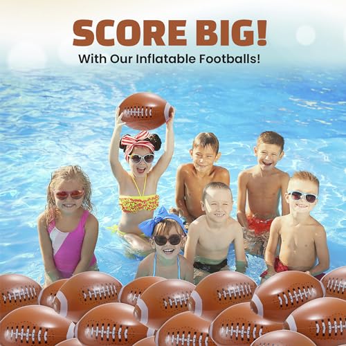 - FUN FOR ALL AGES: Kids of all ages, will love tossing and playing with these inflatable footballs. A must-have accessory for your boy's or girls’ football-themed birthday party. They are made from long-lasting vinyl material and once they are inflated, they are durable enough to kick and toss all the way into the end zone!