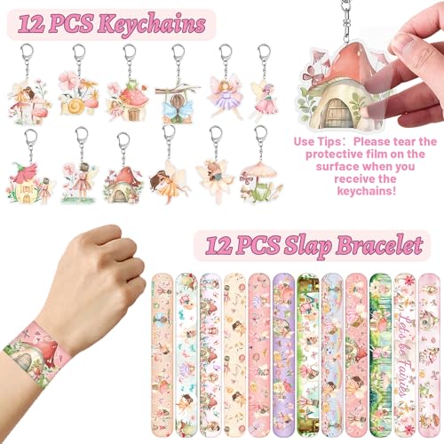 • Fairy Birthday Party Favors: Fairy birthday party favors contains 12 fairy slap Bracelets,12 fairy button pins, 12 fairy key chains, 50 fairy Stickers and 12 sheet fairy temporary tattoos, vivid colorful fairy patterns and charming fairy elements – sweet pastel watercolor woodland fairy slap bracelets can make your party goodies bags stuff unique