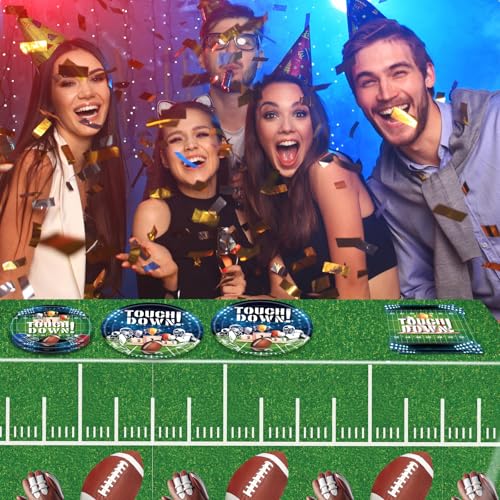 - 【High Quality Football Tableware】The football plates and napkins are made of safe and non-toxic paper material,safe to use. The football tablecloth is made high quality plastic, easy use and storage. These sports party decor convenient to clean up, so that you and your family and friends can enjoy a comfortable and football birthday sports party