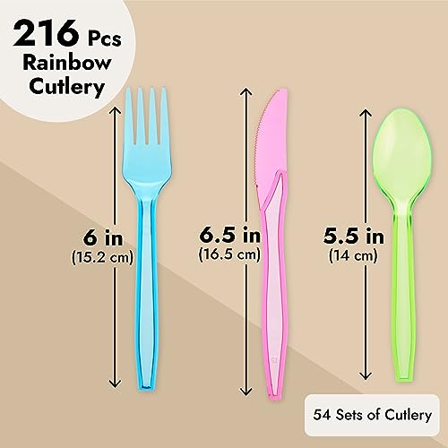 - Comprehensive Party Set: This colorful silverware set includes 54 neon green spoons, 54 neon blue forks, 54 neon orange forks, and 54 neon pink knives, offering a complete solution for any party utensil needs. The variety of colors ensures a lively and cohesive atmosphere for every occasion