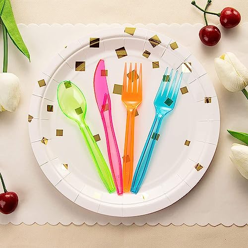 - Versatile Use: Perfect for both indoor and outdoor events, these utensils complement any party supplies setup including neon plates for party settings. Their versatility and vibrant design make them suitable for any themed gathering, from casual barbecues to more formal occasions