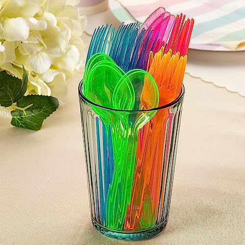 - Stylish and Practical: Crafted as a modern, casual kitchen utensil set, this collection is perfect for those seeking stylish yet practical plastic cutlery options. The neon finish adds a playful touch, ensuring your party stands out with its unique and colorful presentation