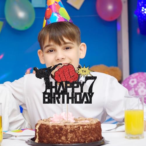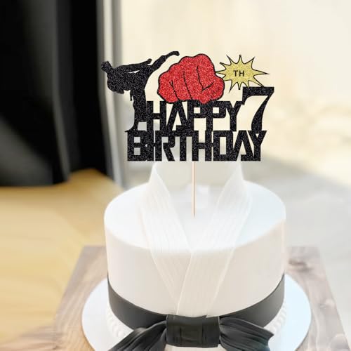 - Karate 7th Cake Topper, Taekwondo theme Kung Fu Sport Cake Topper for baby shower birthday,Boy Girl 7th Karate Happy Birthday Party Supplies