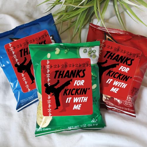 • Multi-Use: use as Taekwondo or Brazilian Jujitsu birthday Elevate your kid's birthday with these Thanks for Kickin' it With Me stickers that beautifully decorate everything, from favor gift bags to cookie bags.