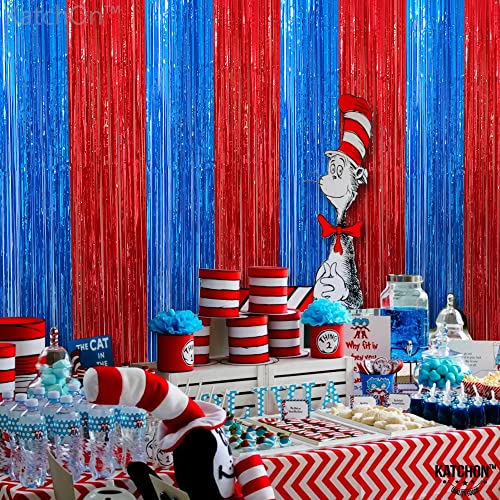 KatchOn Xtralarge Streamers – Red & Blue, 8×3.2 Feet | Fringe Curtain, Party & Carnival Decorations – Circus Theme
