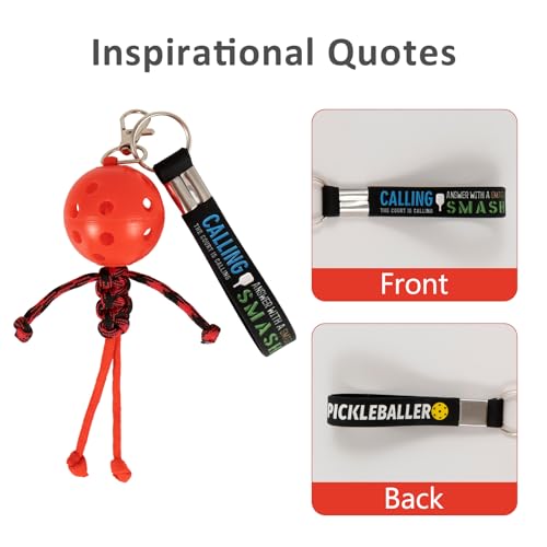- 【 MOST SPECIAL Design 】When we say “UNIQUE”, we mean it! This is the ONE and ONLY design which will definitely be eye-catching! Each keychain contains a pickleball buddy made of high-quality cord and a silicone rubber strap with motivational quotes printed on both sides.