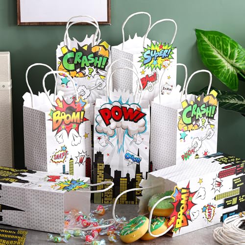 - Quality Paper Construction: crafted from quality paper, our hero goodie bags are both strong and elegant; Safe and sturdy, featuring a comfortable handle and a solid flat bottom, making them not just visually appealing but practical for hero birthday favors