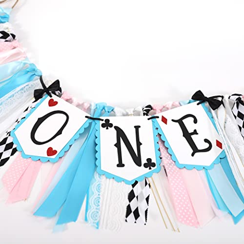 - UNIQUE DESIGN – This banner is made of multi-colored ribbons, with the letter “one” on the double layer card stock and features Alice's black ribbon bow. Every little girl will love it.