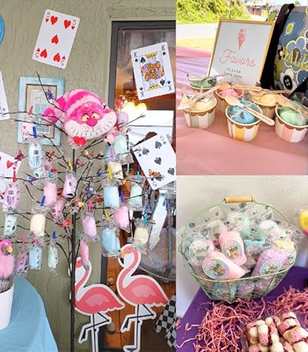 - π 10 individually wrapped Cotton Candy of the following colors and flavors: Pink for Strawberry, Purple for Grape, Blue for Blue Raspberry, Green for Green Apple and Yellow for Banana.