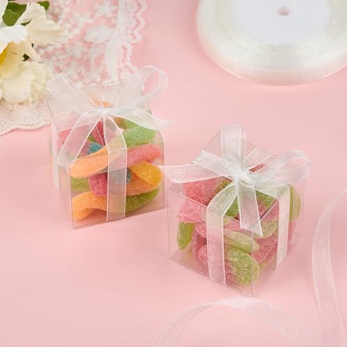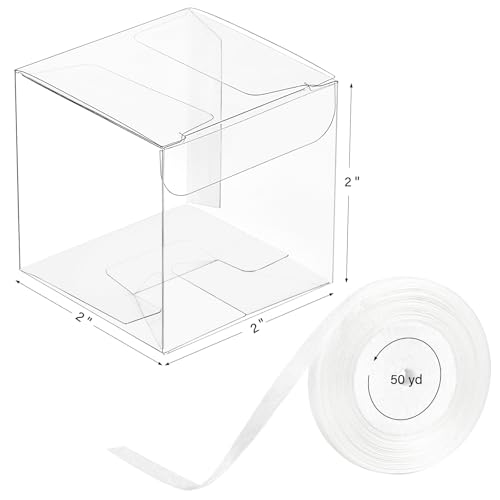 - What You Will Get: The package includes 100pcs clear favor boxes and 50yd white ribbons, making your items more delicate and eye-catching