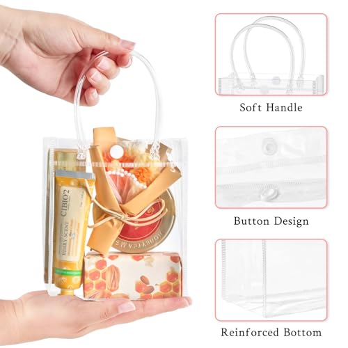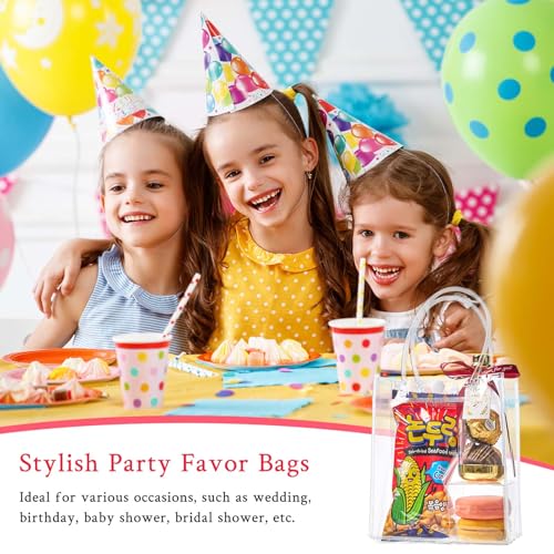 Each plastic tote bag measures 4.9 x 5.9 x 2.8 inches, suitable for holding various small items, such as small toys, lipsticks, eye shadow trays, perfumes, small gift boxes, jewelries, candy, cupcakes and more