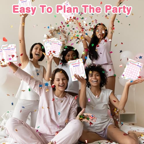 - Exciting Slumber Party Games: Our sleep over party supplies for girls collection includes 4 hilarious slumber party games such as the DIY bingo games,What's in your sleepover bag,selfie scavengee hunt, would you rather,ensuring non-stop laughter and interactive fun. These sleepover games are sleep over essentials for girls party.
