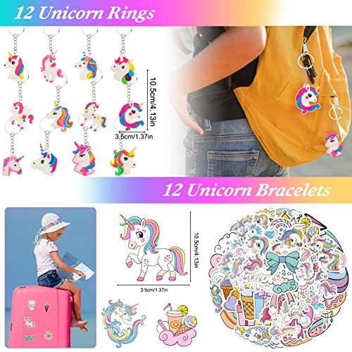 • Complete Unicorn Party Favors Set – Our Unicorn party favors set is the ultimate collection of unicorn-themed party supplies. With 50 unicorn stickers, 12 party favor bags, 12 keychains, 12 rings, 12 slap toys, 12 scratch bookmarks, and 12 make-a-face stickers, you'll have everything you need to create a magical unicorn party.