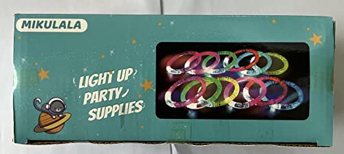 - [36pcs party supplies bulk] Mikulala Light up bracelets comes in 36pcs glow bracelets bulk. Lighting Party Favors supplies are 2.56” ID, and 3.35” OD, and connector is removable and can be worn on large wrists. The light up party favors supplies are suitable for all and available in 6 colors ( red, pink, yellow, green, blue, purple )