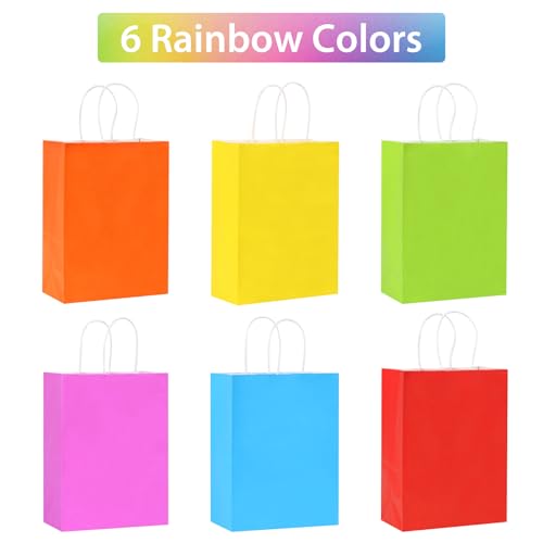 - 【Rainbow Color Gift Bags】The pack comes with 36 pcs small kraft paper bags with handles, with a bunch of bright and vibrant colors ( red, orange, yellow, light green, blue and rose red ), 6pcs per color. Easy for standing up and carrying.