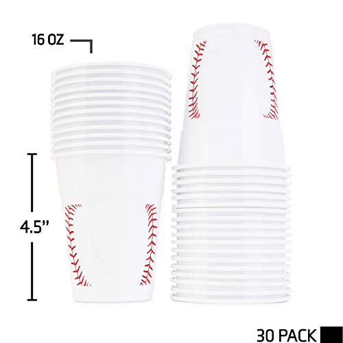 Neliblu Baseball-Themed 16 oz Plastic Cups, Pack of 30, Suitable for Birthday Party Supplies and Game Day