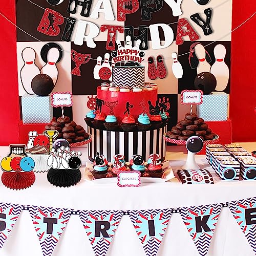 - 🎁High Quality: The Bowling Happy Birthday banner, cake toppers, honeycomb centerpieces, and hanging decorations are made of sturdy cardstock, The Bowling balloon is made of natural latex, which is a very durable, non-toxic, High-quality material that allows you to use it for a long.