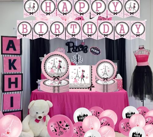 - Package – you will get 1 paris theme birthday banners, 15pcs Paris Balloons Eiffel Tower Latex Balloons, 16pcs paris dinner plates,16pcs paris dessert plates and 20pcs paris napkins.The complete decoration set will bring more fun to your party and make it more unforgettable