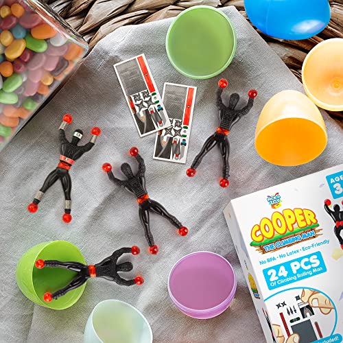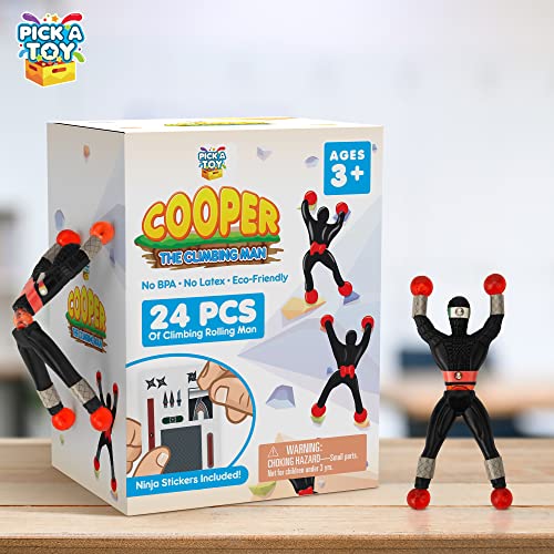 PICK A TOY 24 Sticky Wall Climbing Black Ninjas with DIY Costume Stickers – Stretchy Window Crawlers, Mini Toys, Birthday Goodie Bag, Party Favors for Kids
