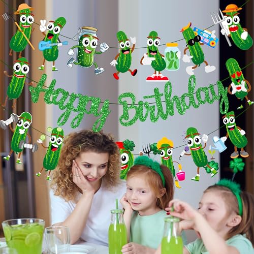 • 【Pickle birthday banner decorations】Package includes 1Pcs green happy birthday sign banner and 2pcs green pickle cucumber cutout banner. 2Pcs pickle theme party banners are perfect as a photo backdrop for party and leave a happy moment with your family and friends.