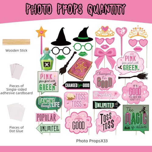 - Unique Design: Our Birthday Party Decorations Photo Booth Prop Set comes with 33 pieces in pink and green colours and combines many cute elements including: brooms, wands, crowns and other iconic motifs, providing a comprehensive selection for your party, perfect for recreating magical moments with your friends