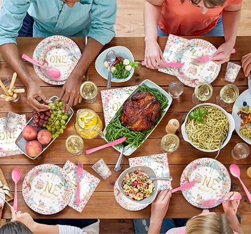 - 【Teacup Party Tableware】This teacup themed first birthday plates and napkins party decorations are designed to celebrate the first birthday, the timeless charm of the wonderland theme is heartwarming and is ideal for any girl's first birthday table decoration event
