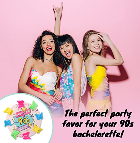- BUTTERFLY CLIPS ARE, LIKE, TOTALLY AWESOME! Each card includes 8 plastic neon butterfly hair clips and is made with premium card stock, which reads “Bach to the 90s” The ultimate neon bachelorette party accessory your guests will love!
