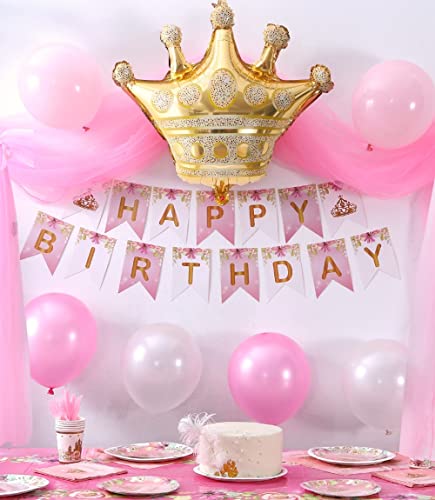 Princess Plates and Napkins Party Supplie – Serves 16 – Princess Birthday Decorations Includes Paper Plates Cups Napkins Cutlery Balloons Banner Tablecloth Party Favor Dรฉcor Idea